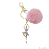 Golden metal keychain with pom pom and a enameled ballerina pendant with rhinestones.