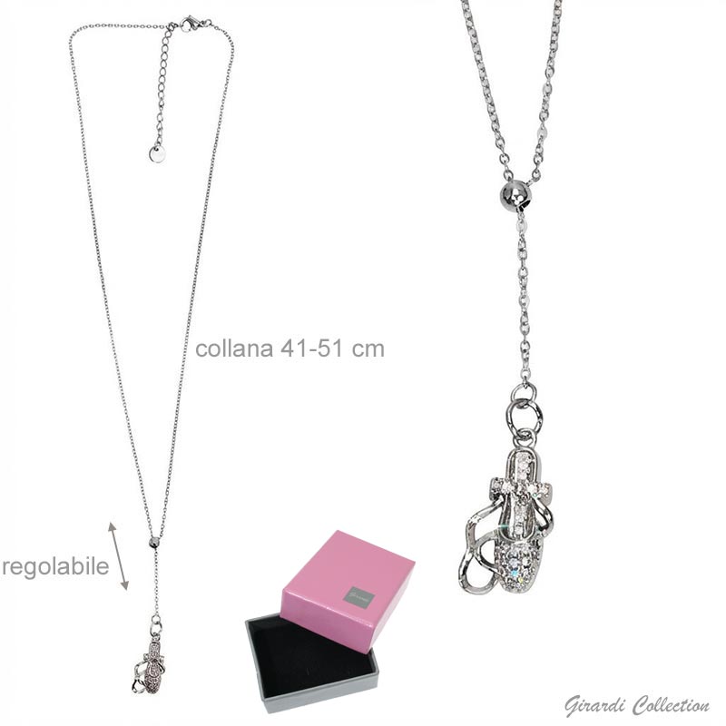 Collana saliscendi in acciaio con punta ballerina con zirconi